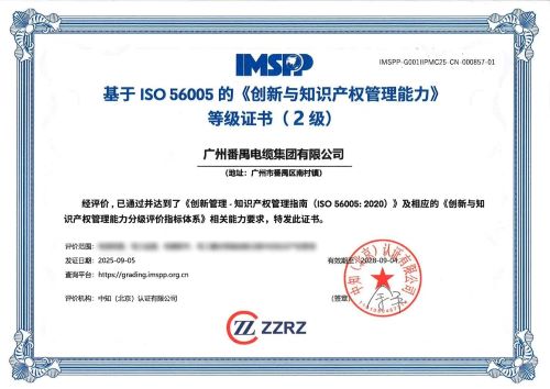 近日,廣州番禺電纜集團(tuán)(下稱“番纜集團(tuán)”或“集團(tuán)”)順利通過(guò)創(chuàng)新與知識(shí)產(chǎn)權(quán)管理能力分級(jí)評(píng)價(jià),成功獲得中知(北京)認(rèn)證有限公司頒發(fā)的《創(chuàng)新與知識(shí)產(chǎn)權(quán)管理能力》等級(jí)證書(shū)(2級(jí))。同時(shí),集團(tuán)內(nèi)五位工程師憑借出色的專業(yè)能力與創(chuàng)新實(shí)踐,榮獲“創(chuàng)新管理師”稱號(hào),為企業(yè)創(chuàng)新發(fā)展注入了更強(qiáng)動(dòng)力。